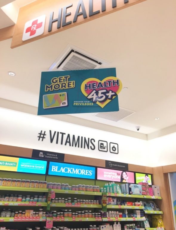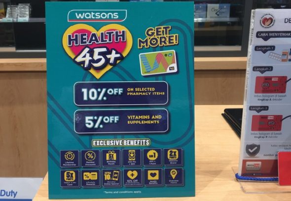 Watsons ada buat promosi istimewa untuk ahli Watsons yang berusia 45 tahun ke atas tau! Anda akan dapat diskaun 10% untuk produk vitamin dan juga ubat-ubatan dispensari (Ubat yang dibeli di farmasi).