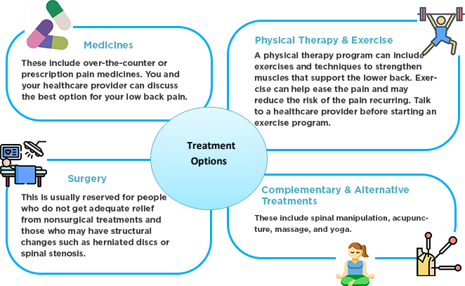 - National Institute of Neurological Disorders and Stroke (NINDS). Low Back Pain Fact Sheet. Available at: https://www.ninds.nih.gov/Disorders/Patient-Caregiver-Education/Fact-Sheets/Low-Back-Pain-Fact-Sheet#3102_4 Accessed on October 07, 2020