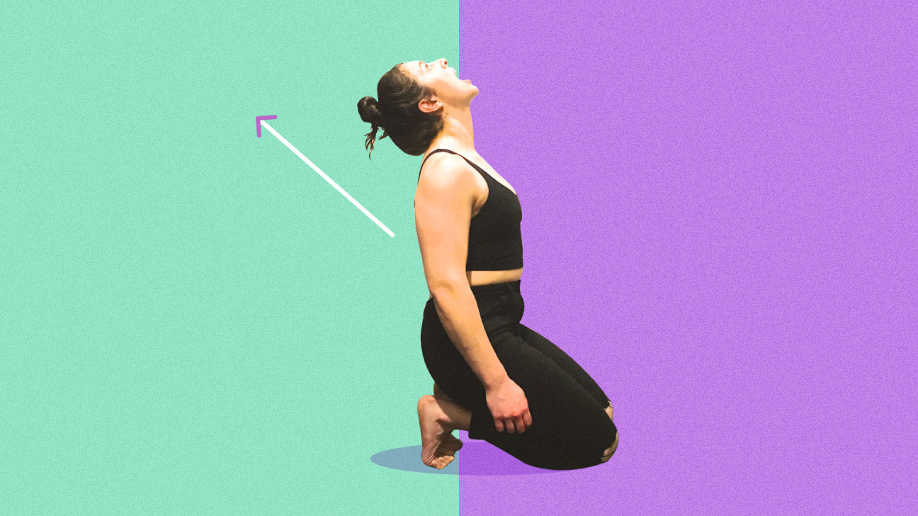 - To intensify the stretch, try to lift your heels higher while keeping your tailbone pressed into the mat. Look forward and draw your shoulders away from your ears.