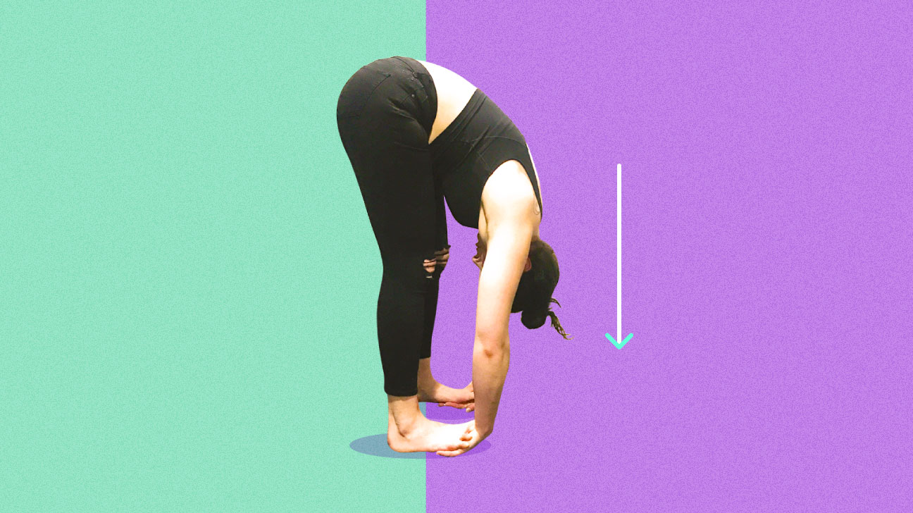 - Allow your toes to come right into your wrist creases. Press into your palm with the balls of your feet and relax your head. Breathe here for at least three deep breaths.