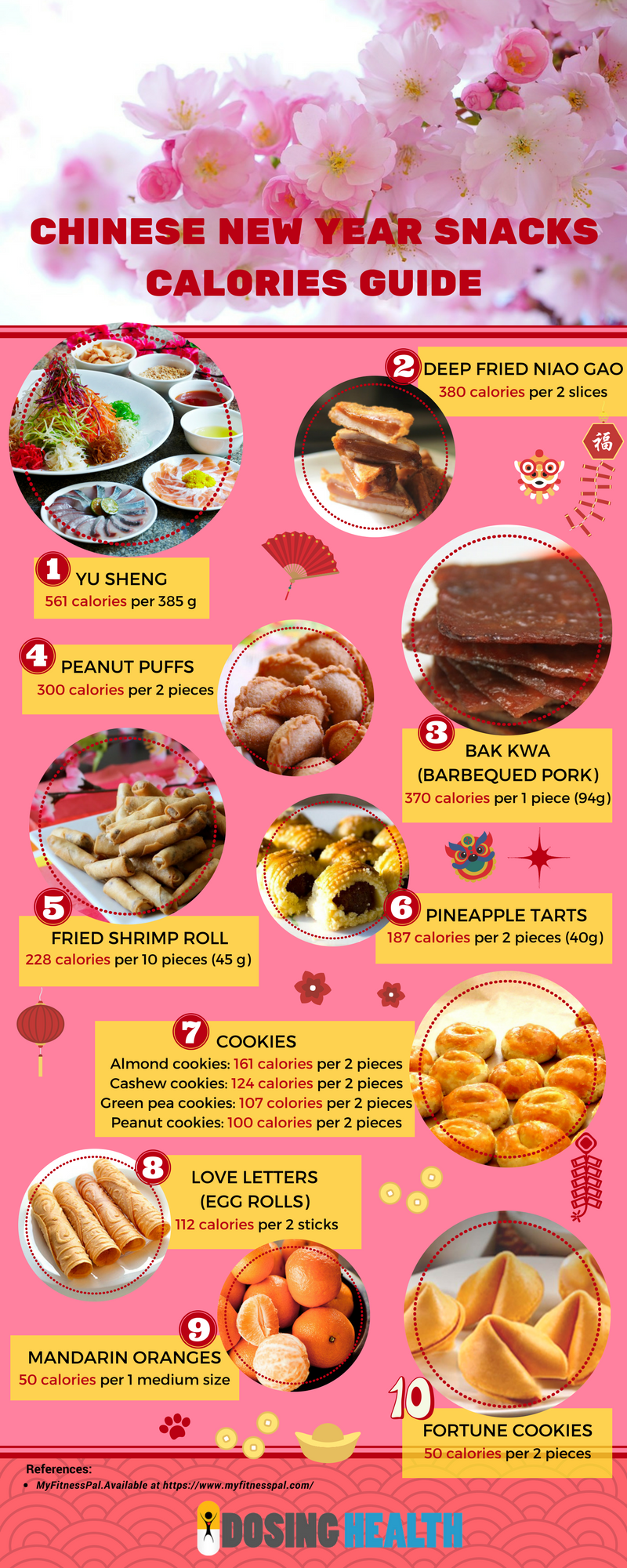 - CNA. How many calories are lurking in your Chinese New Year snacks? Available from https://www.channelnewsasia.com/singapore/chinese-new-year-snacks-fat-calories-fish-skin-345266