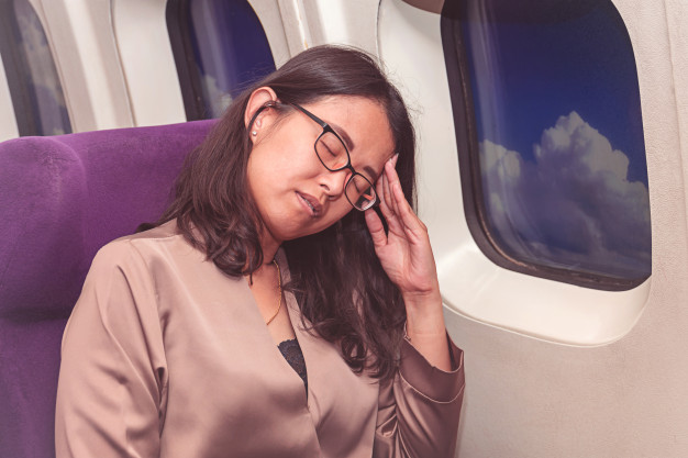 Otherwise known as Economy Class Syndrome, DVT occurs when a blood clot develops in the deep veins of the legs due to reduced mobility during the flight. Small clots may not produce any symptoms, but larger clots can cause pain and swelling in the leg. The real problem happens when a part of the clot breaks off and flows to the lungs, causing pulmonary embolism, which can be fatal. Increased risk of DVT include previous DVT, blood disorders, smoking, consumption of contraceptive pills, and recent orthopaedic or neurosurgery.